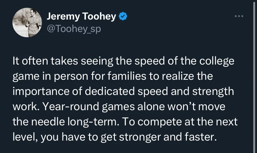 · Speed training begins to detrain after 3-8 days of neglect. A large break in training before the season is a recipe for a slower athlete. This is why in-season training is the most important time to be participating in a performance program.
